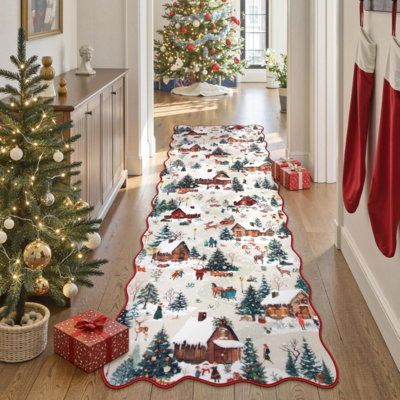 Made from select high-quality crystal velvet, its texture is as delicate and skin-friendly as a cloud, soft and fluffy underfoot, providing a gentle, enveloping feel even when barefoot. The short, dense pile is resistant to shedding, with straight, lustrous fibers that reveal a delicate texture under light, enhancing the sophistication of your space. The 60x180cm length is just right, perfect for placement in the entryway, in front of the living room sofa, beside the bed in the bedroom, or under the Christmas tree. It defines different areas while seamlessly integrating Christmas elements into the home environment, instantly brightening the festive atmosphere.
